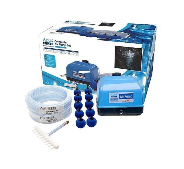 De Aquaforte Hi-Flow luchtpompset V-60 is incl. 50 meter luchtslang en 10 luchtstenen. Dankzij de dubbele luchtkamer heeft de pomp een zeer hoge opbrengst en is krachtig in zijn uitstoot. De Aquaforte Hi-Flow zorgt met gemak voor extra zuurstof in uw vijver tijdens de zomerperiode. Daarnaast is de pomp in de winter inzetbaar voor het ijsvrij houden van uw vijver.