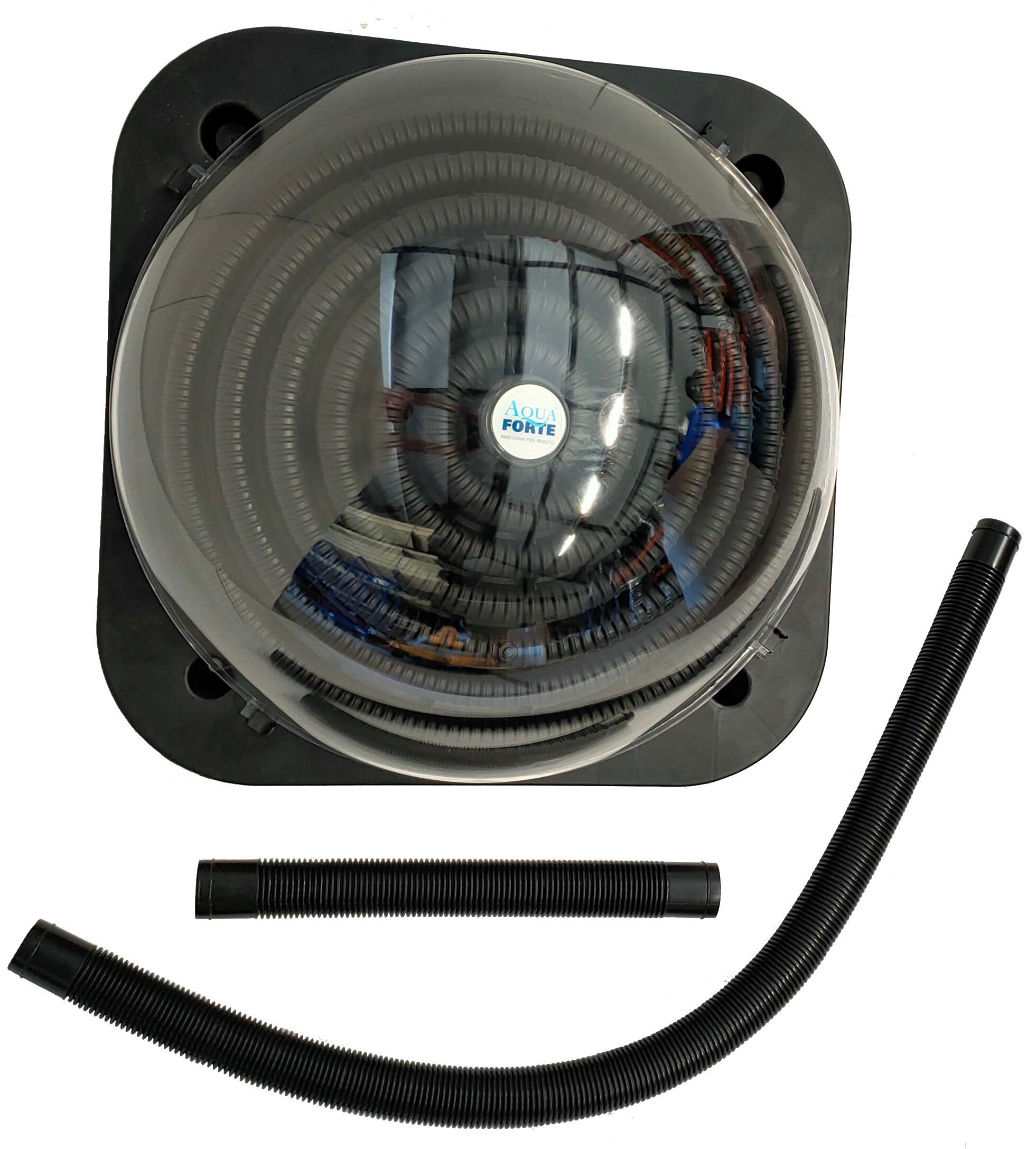 De standaard uitvoering van de AquaForte Solar Bol zwembadverwarming beschikt over een interne koepel van polycarbonaat met versterkt glasvezel materiaal. De warmte van de zon wordt geïsoleerd door de koepel, zo creëer je een broeikaseffect wat het water in de interne slang verwarmt. Het UV-bestendige materiaal en de zwarte carbon polypropyleen slang zorgen voor tot wel 95 % rendement. Een enkele heater kan een zwembad van 6 m³ verwarmen.