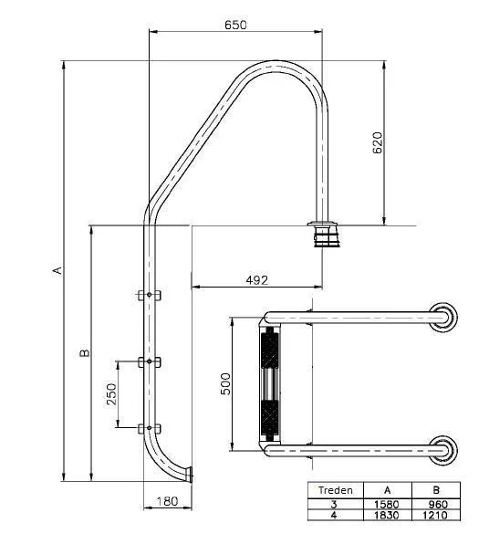 AstralPool RVS zwembadtrap standaard RVS-304 - 3 treden ladder is een standaard model voorzien van schuin aflopende RVS handgrepen. Deze gepolijste zwembadtrap kan maximaal tot 150 Kg worden belast. De trap wordt compleet geleverd met bevestigingsmateriaal en aarding. Het product is geproduceerd volgens de EN 16582-1 norm.