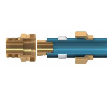 - Plaats de wartelmoer en de witte klemring over de buis.