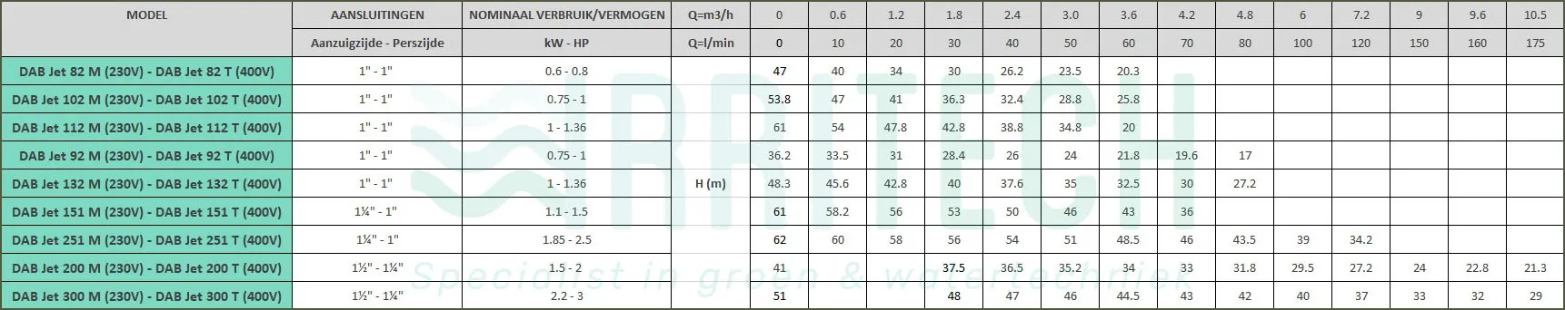 Technische gegevens Dab Jet 251M-T Hydrofoor: