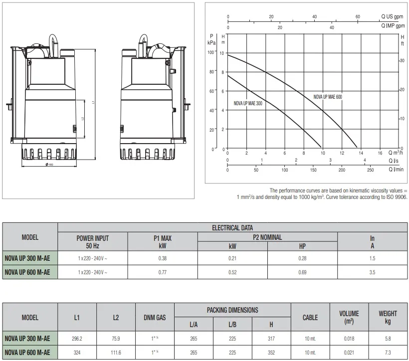 De DAB Nova Up 600 M-AE dompelpomp is een elektrische pomp, ontworpen voor het wegpompen van schoon en licht vervuild water. De pomp kan eenvoudig en snel worden omgevormd tot een vlakzuiger, waarmee het water tot op enkele millimeters (0-1 mm) kan worden weggepompt.
