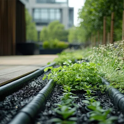 Grote plantborders en teelt: Drukgecompenseerde druppelslang