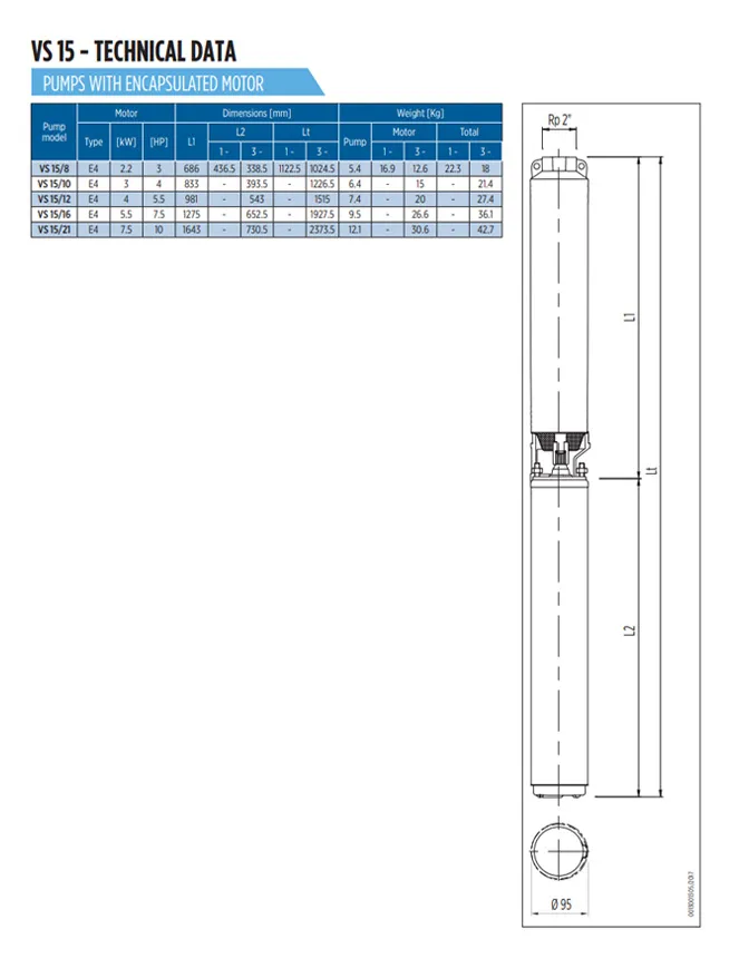 De Franklin VS 15/12 is een robuust en efficiënt hydraulisch pompdeel met een vermogen van 5.5 PK (4 kW), geschikt voor 4” bronnen. Dit pompdeel wordt gecombineerd met een motordeel en is ideaal voor toepassingen in de landbouw, industrie, huishoudens en drukverhogingssystemen.