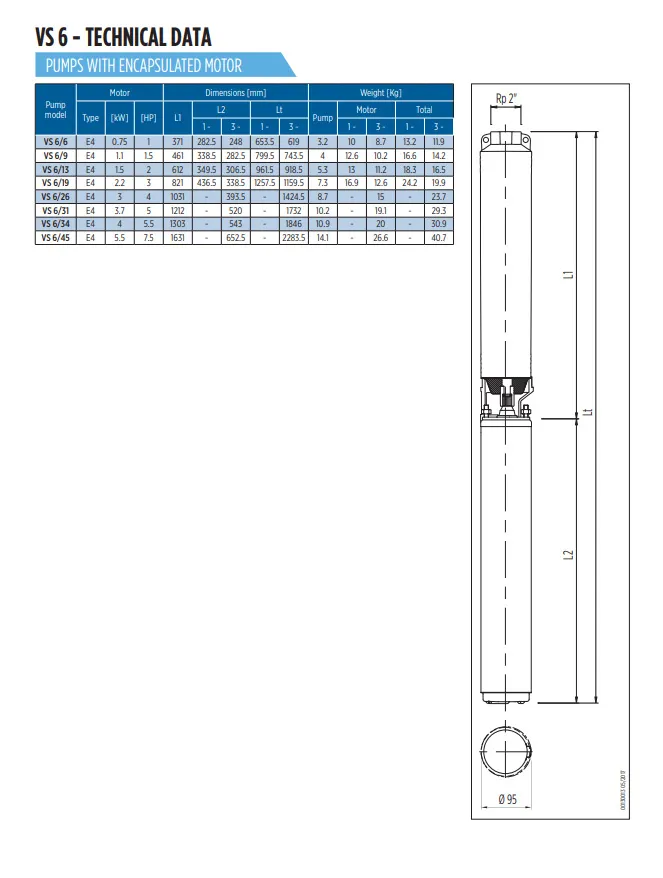 De Franklin VS 6/31 is een robuust en efficiënt hydraulisch pompdeel met een vermogen van 5 PK (3.7 kW), geschikt voor 4” bronnen. Dit pompdeel wordt gecombineerd met een motordeel en is ideaal voor toepassingen in de landbouw, industrie, huishoudens en drukverhogingssystemen.