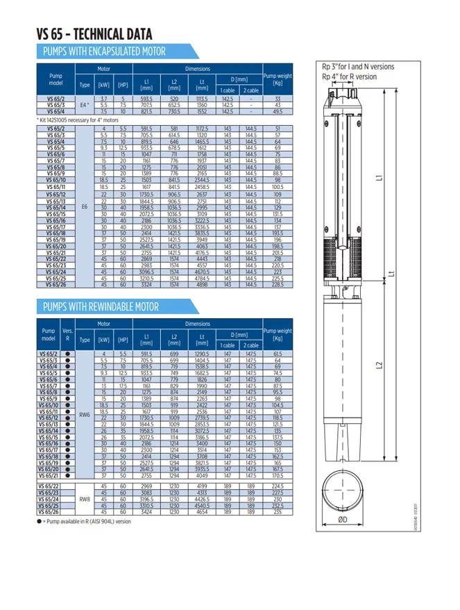 De Franklin VS 65/4 is een robuust en efficiënt hydraulisch pompdeel met een vermogen van 10 PK (7.5 kW), geschikt voor 6” bronnen. Dit pompdeel wordt gecombineerd met een motordeel en is ideaal voor toepassingen in de landbouw, industrie, huishoudens en drukverhogingssystemen.