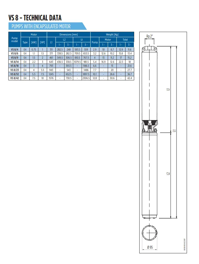 De Franklin VS 8/9 is een robuust en efficiënt hydraulisch pompdeel met een vermogen van 2 PK (1.5 kW), geschikt voor 4” bronnen. Dit pompdeel wordt gecombineerd met een motordeel en is ideaal voor toepassingen in de landbouw, industrie, huishoudens en drukverhogingssystemen.