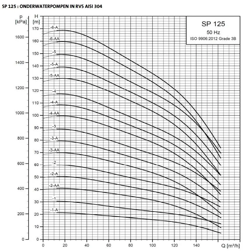 Grundfos SP 125-3-A (400 V) bronpomp specificaties