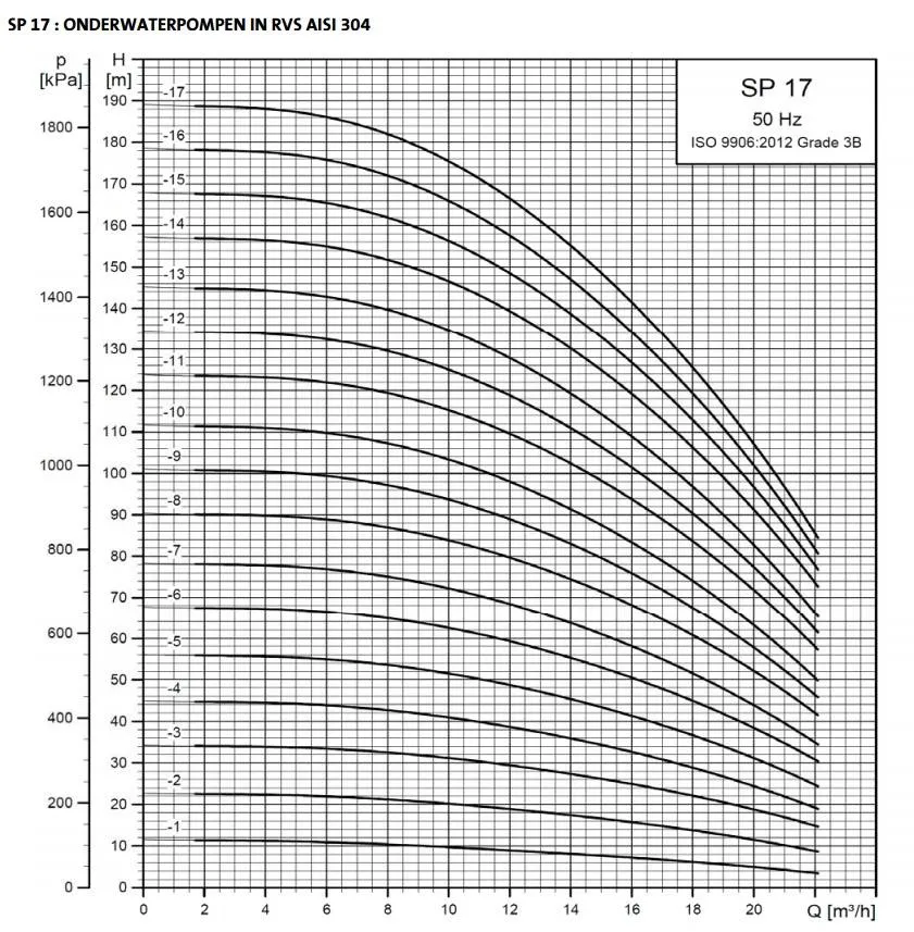 Grundfos SP 17-7 (400 V) bronpomp specificaties