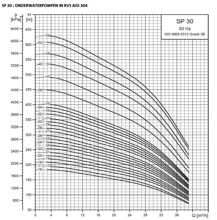 Grundfos SP 30-18 (400 V) bronpomp specificaties