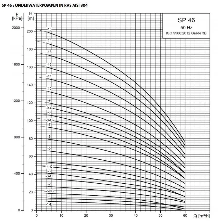 Grundfos SP 46-15 (400 V) bronpomp specificaties