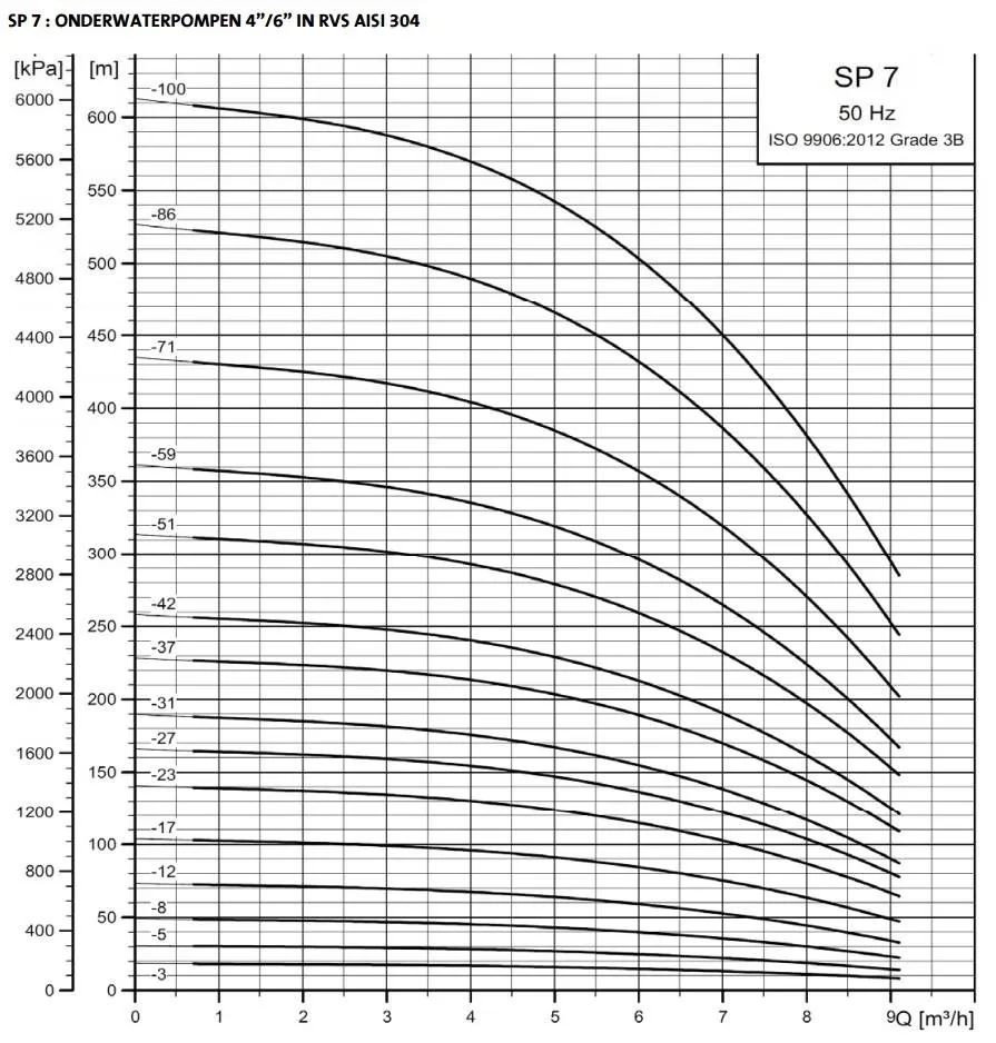 Grundfos SP 7-59 (400 V) bronpomp 6" specificaties