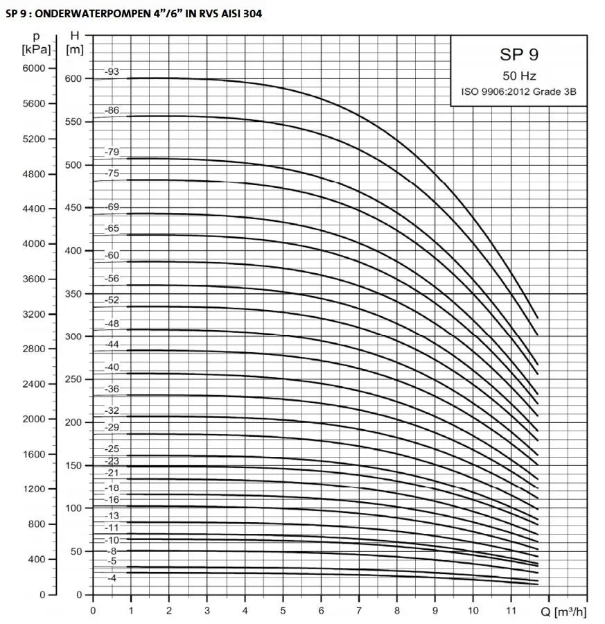 Grundfos SP 9-32 (400 V) bronpomp specificaties