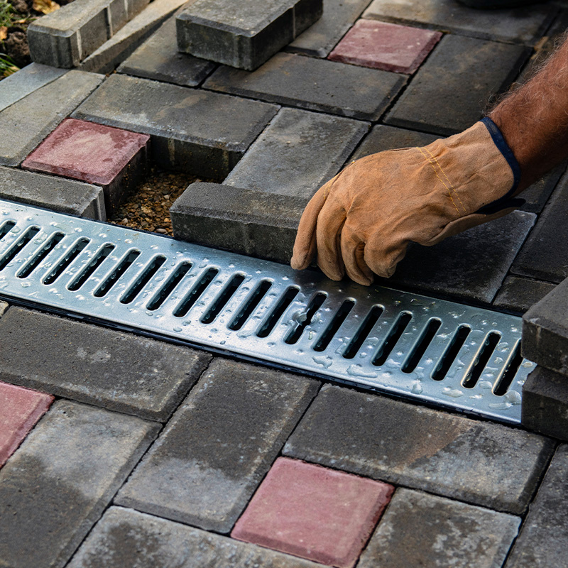 Zorg dat alles rondom de lijngoot is afgewerkt. Leg de bestrating, grond of grind rondom de lijngoot. Zorg ervoor dat de lijngoot in gebruik kan worden genomen. Test eventueel de werking met een tuinslang.