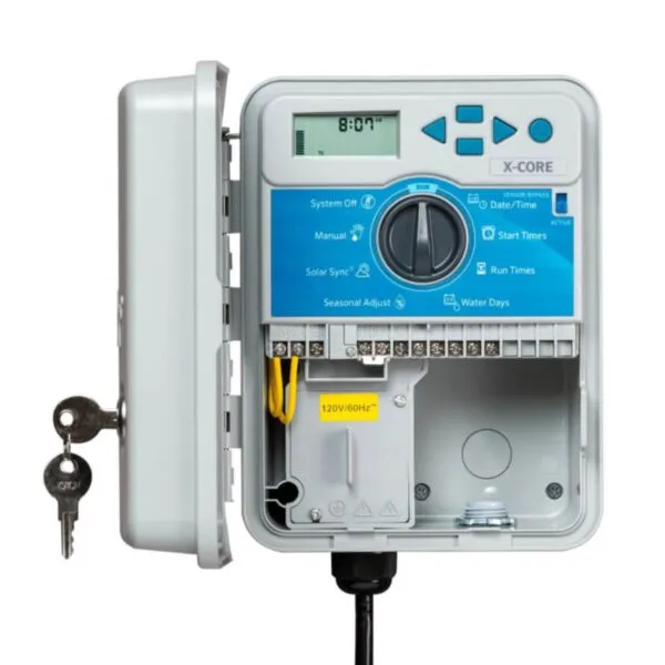 De Hunter X-Core 801 8 stations outdoor beregeningscomputer is een zeer gebruiksvriendelijke controller voor tuin- en landschapsberegening. De beregeningscomputer biedt basisbereiken voor beregening met handige uitbreidingsopties. De beregeningstijden zijn instelbaar van 0-4 uur met stappen van 1 minuut.