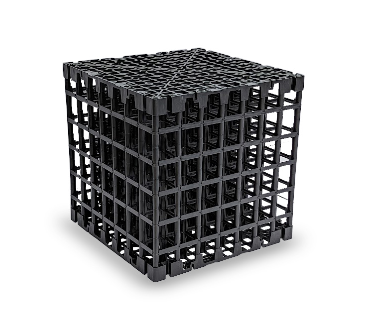 De Infiltratiekrat 180 liter zwaar kaal - 60 x 60 x 50 cm is een vernieuwd model met een groter beschikbaar volume en meer drukpunten voor een zware belasting. De krat heeft een compacte vormgeving (60 x 60 x 50 cm) en is te gebruiken voor het modulair opbouwen van een infiltratiekrat.