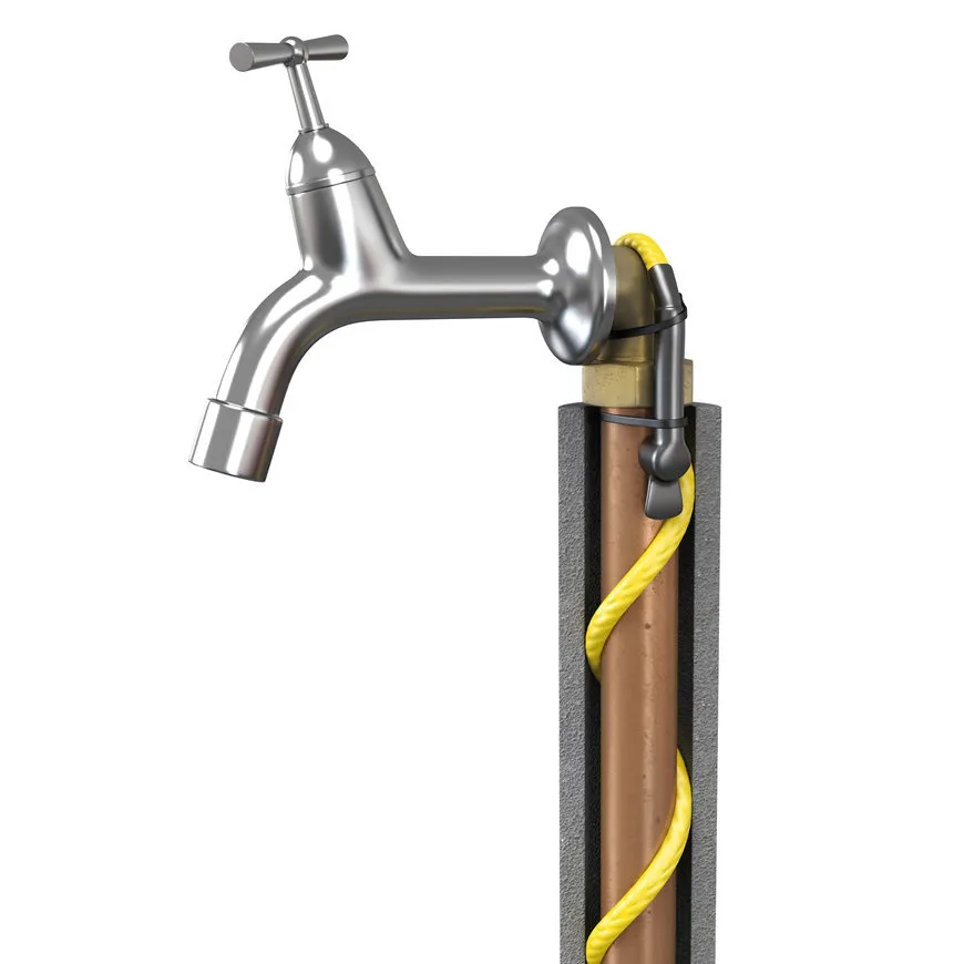 Het lint wordt eenvoudig aan de buitenzijde van de leiding bevestigd. Voor een optimale werking adviseren wij een leidingisolatie met een minimale wanddikte van 15 mm. Dit zorgt voor maximale bescherming en voorkomt warmteverlies.