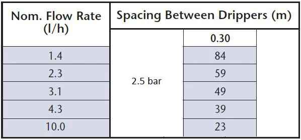 Dankzij de afstand van 30 cm tussen de druppelaars ben je verzekerd van een optimale waterverdeling. Hiermee beschik je over een zeer effectief en duurzaam druppelsysteem dat zorgt voor een goede ontwikkeling van planten en gewas.