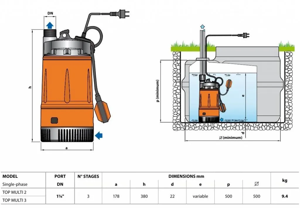 Een belangrijk kenmerk van de Pedrollo Top-serie is het compacte formaat in combinatie met de RVS pompas. Hiermee is de pomp eenvoudig te verplaatsen en kan deze in smalle putten of andere compacte ruimtes geïnstalleerd worden.