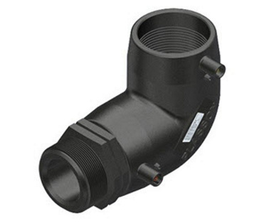 Plasson elektrolas overgangsknie 50 mm x 1 1/2" - 90 ° voor water buitendraad voor een stevige & waterdichte verbinding. Met deze overgangsknie van Plasson maakt u een nette verbinding met behulp van elektrolassen. Een efficiënte manier voor montage van buizen, hulpstukken en leidingen. Dit Plasson hulpstuk is gemaakt van PE (Polyethyleen) met buitendraad verbinding en uitsluitend geschikt voor water.