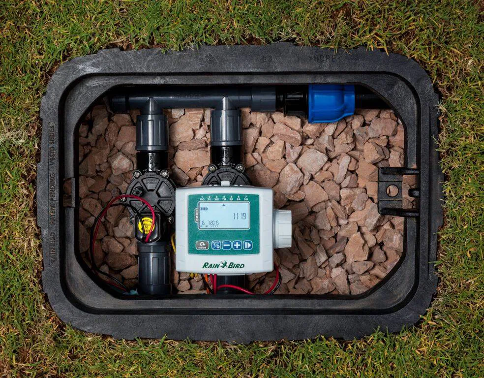 De Rainbird ESP-9V 6 stations outdoor beregeningscomputer is de ideale oplossing voor installatie op plekken waar geen stroom aanwezig is. De controller wordt gevoed door één of twee 9 volt batterijen en is volledig waterdicht. Op een enkele batterij kun je de beregeningscomputer ongeveer 1 jaar lang van energie voorzien.