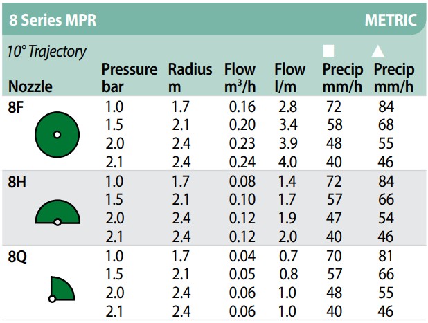 Door de zeer lage werkdruk en waterverbruik zijn de MPR nozzles geschikt voor installatie op het vaste waterleidingnet.