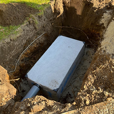 Het kan natuurlijk voorkomen dat de regenwater opslag vol raakt. Daarom raden we altijd aan een infiltratiesysteem aan te sluiten op uw wateropslag. Al het overtollige regenwater stroomt zo via een ondergronds infiltratiesysteem weg de grond in, zonder dat je hier last van hebt.